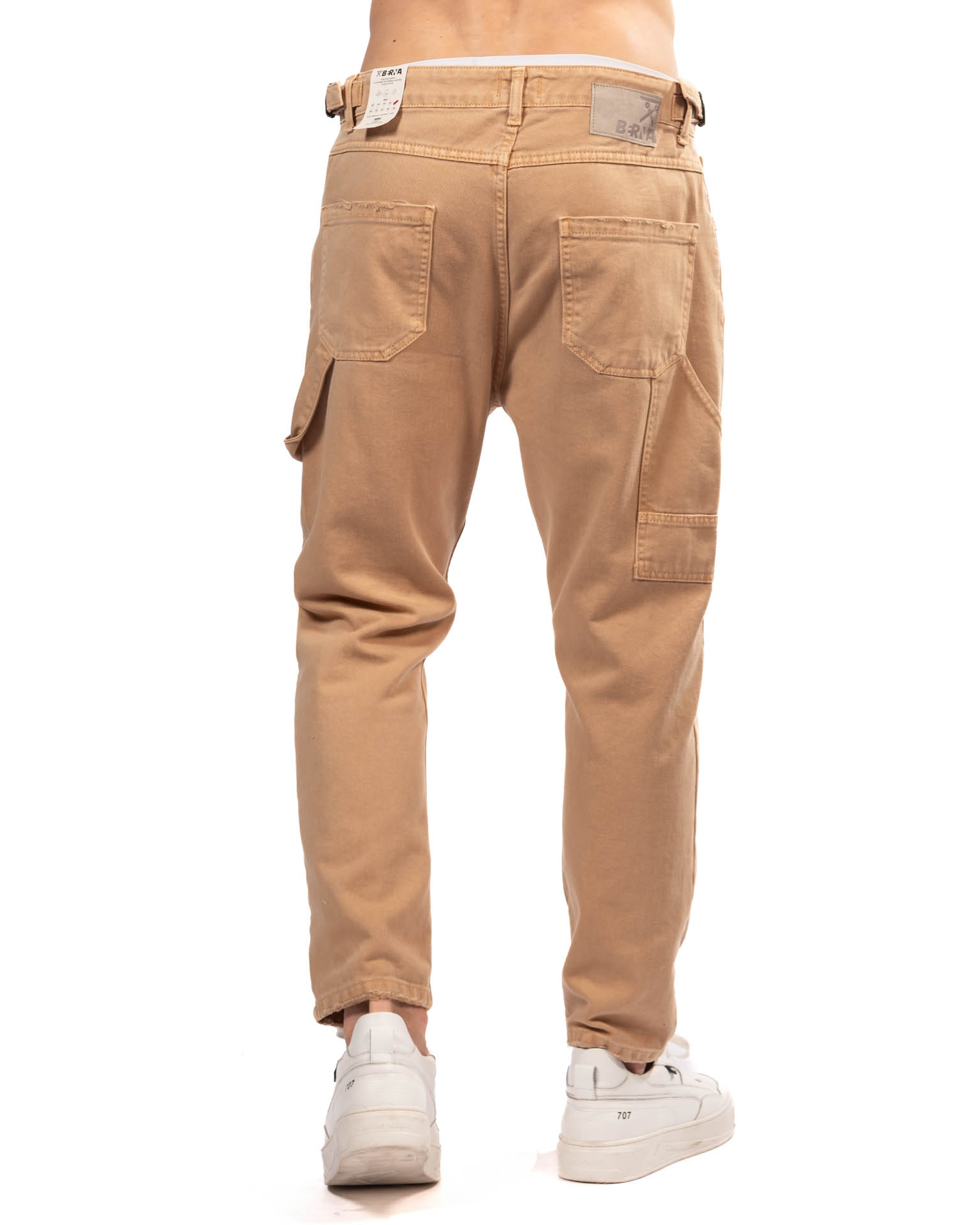 Denim carpenter vestibilità cropped modello Maracanã in puro cotone colorato. Chiusura centrale con bottoni e zip nascosta. Cinturino regolabile altezza vita. Salpa logo applicata nel retro. Orlo effetto used.