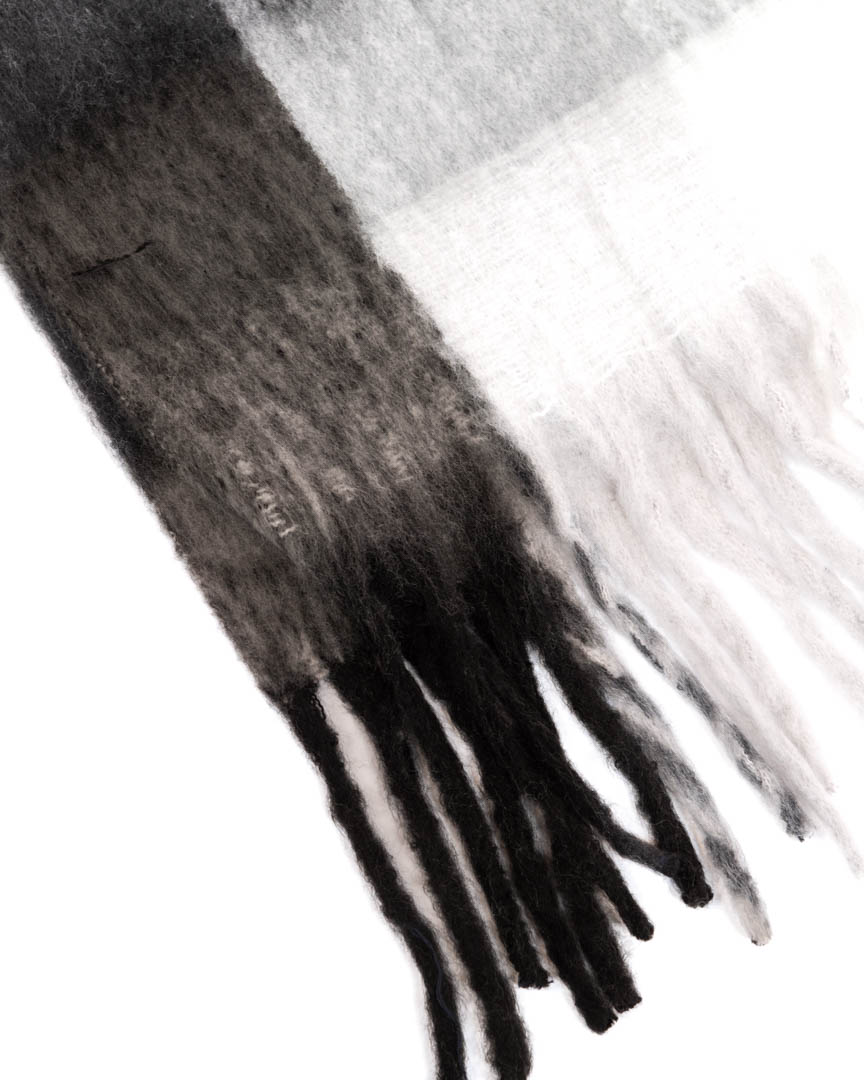 Sciarpa in pura viscosa con maxi check colorati. Effetto spazzolato. Orlo con frange. Etichetta logo applicata lateralmente. Dimensione 200×40 cm