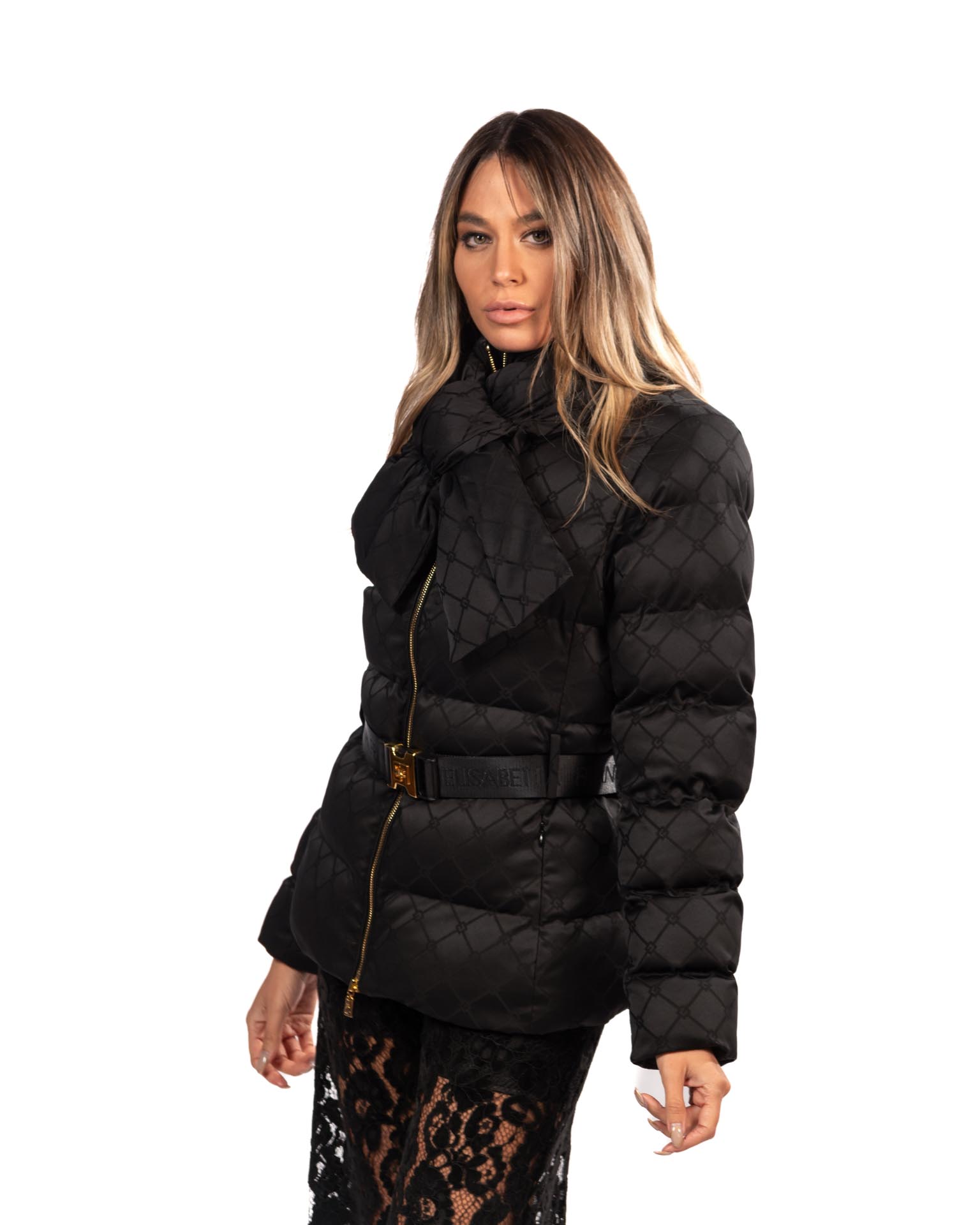 Piumino in tessuto vela dalla vestibilità regular. Presenta collo con sciarpa imbottita e amovibile e tasche con zip invisibile. Il pattern all-over con losanga jacquard rende la texture preziosa. Cintura in vita con fibbia per definire il punto vita.