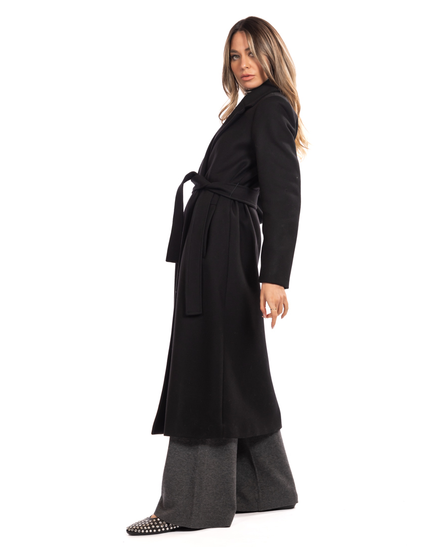 Cappotto in panno doppio di misto lana diagonale con fodera interna ed etichetta Manteco