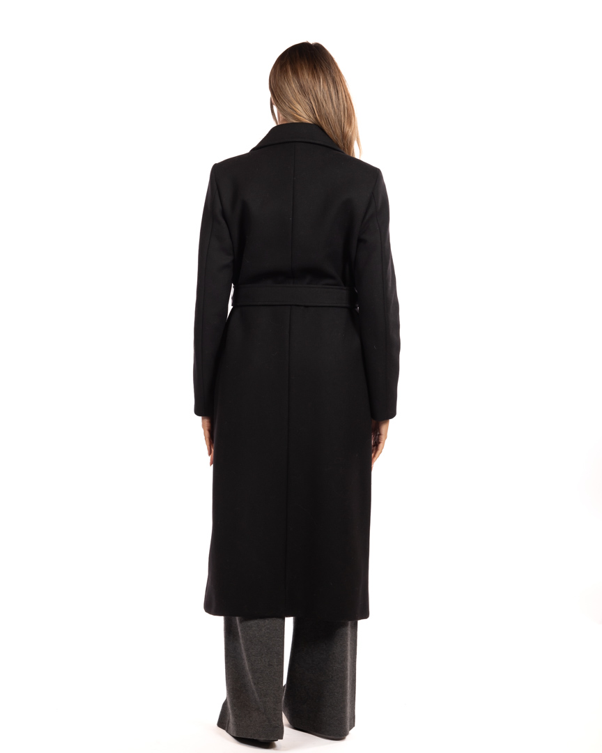 Estetiche essenziali, linee decise e un lessico metropolitano definiscono questo nuovo cappotto in panno double Manteco. La linea è dritta e avvolgente grazie alla cintura che enfatizza il punto vita. Il rever grafico e la chiusura doppiopetto aggiungono una nota decisa.