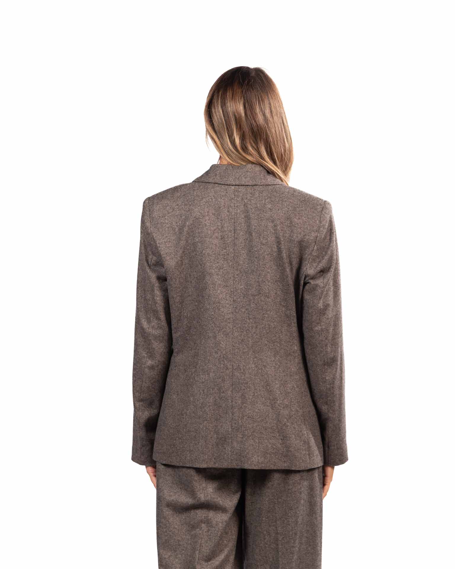 Il perfetto mix tra sartorialità e tocchi femminili: nuovo blazer in flanella leggera di misto lana, con etichetta Manteco e fodera interna. Deciso nelle linee, diventa grintoso con pants sartoriali o con la gonna svasata abbinata.