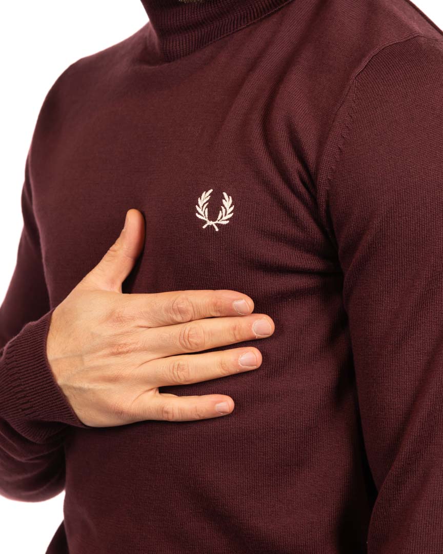 Un capo intramontabile firmato Fred Perry, sinonimo di eleganza sportiva e stile senza tempo. Questo maglione da uomo a collo alto è realizzato in morbido cotone misto lana, ideale per offrire calore e comfort durante la stagione fredda. Il colore bordeaux, intenso e raffinato, dona un tocco distintivo a qualsiasi outfit.