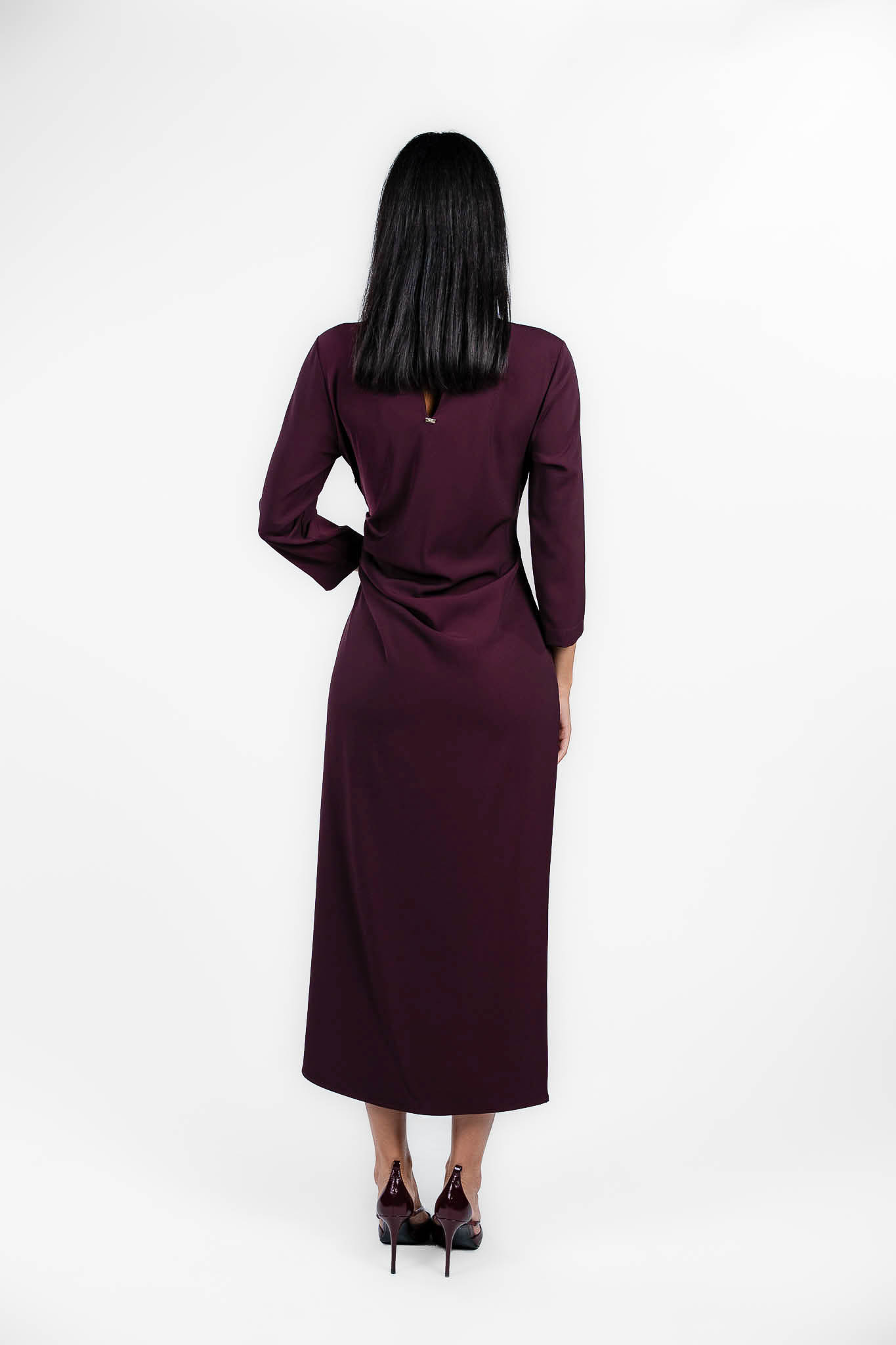 Elegante e raffinato, questo abito a manica lunga longhette è un capolavoro di stile e comfort. Il dettaglio dell’orlo nel fianco crea un gioco di forme che enfatizza la silhouette, mentre il drappeggio laterale aggiunge un tocco di movimento e femminilità, valorizzando la figura in modo delicato. Il design lungo e fluido, con maniche lunghe, è perfetto per le stagioni più fresche, ma mantiene un’aria sofisticata adatta a qualsiasi occasione speciale. Un abito versatile che può essere facilmente abbinato a tacchi alti per un look da sera o a scarpe più basse per un outfit elegante ma comodo.