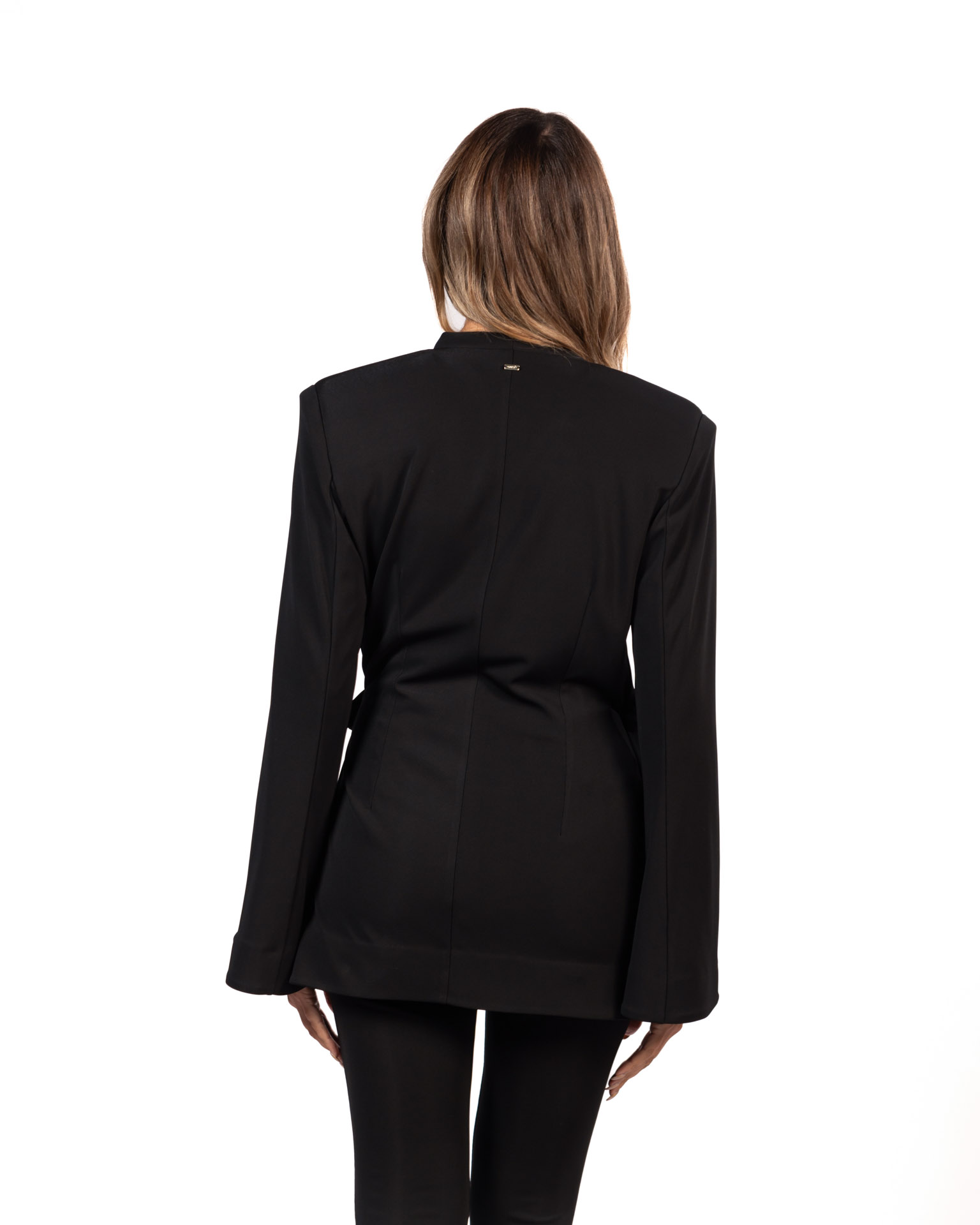 Un capo sofisticato e moderno, la giacca destrutturata Gaudì nera è pensata per valorizzare la silhouette con un design minimal e senza tempo. La chiusura a portafoglio aggiunge un tocco di originalità e praticità, permettendo una vestibilità personalizzata e un comfort ottimale.