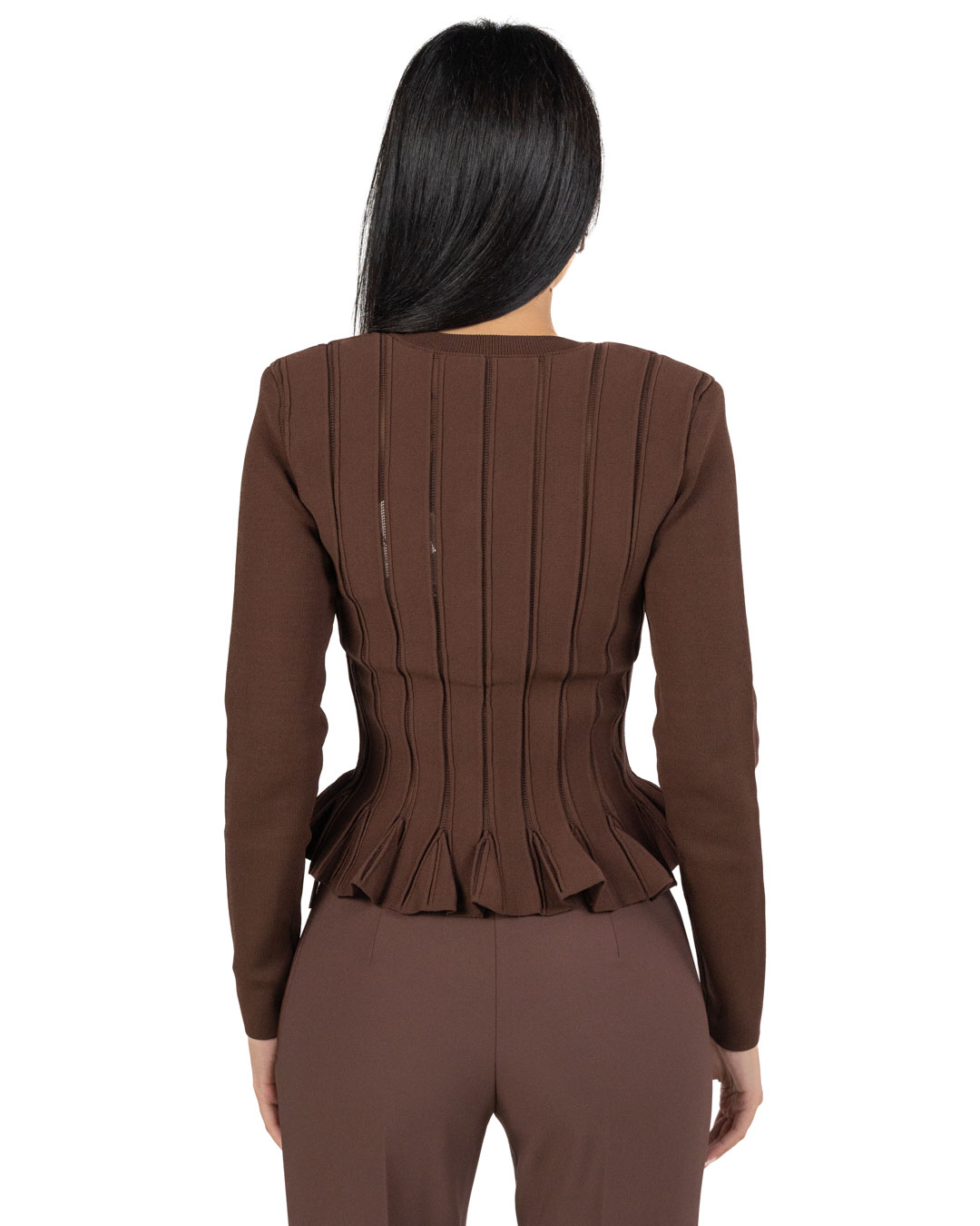 Giacchino in maglia con volan nel fondo e dettaglio con bottoni oro – materiale: viscosa