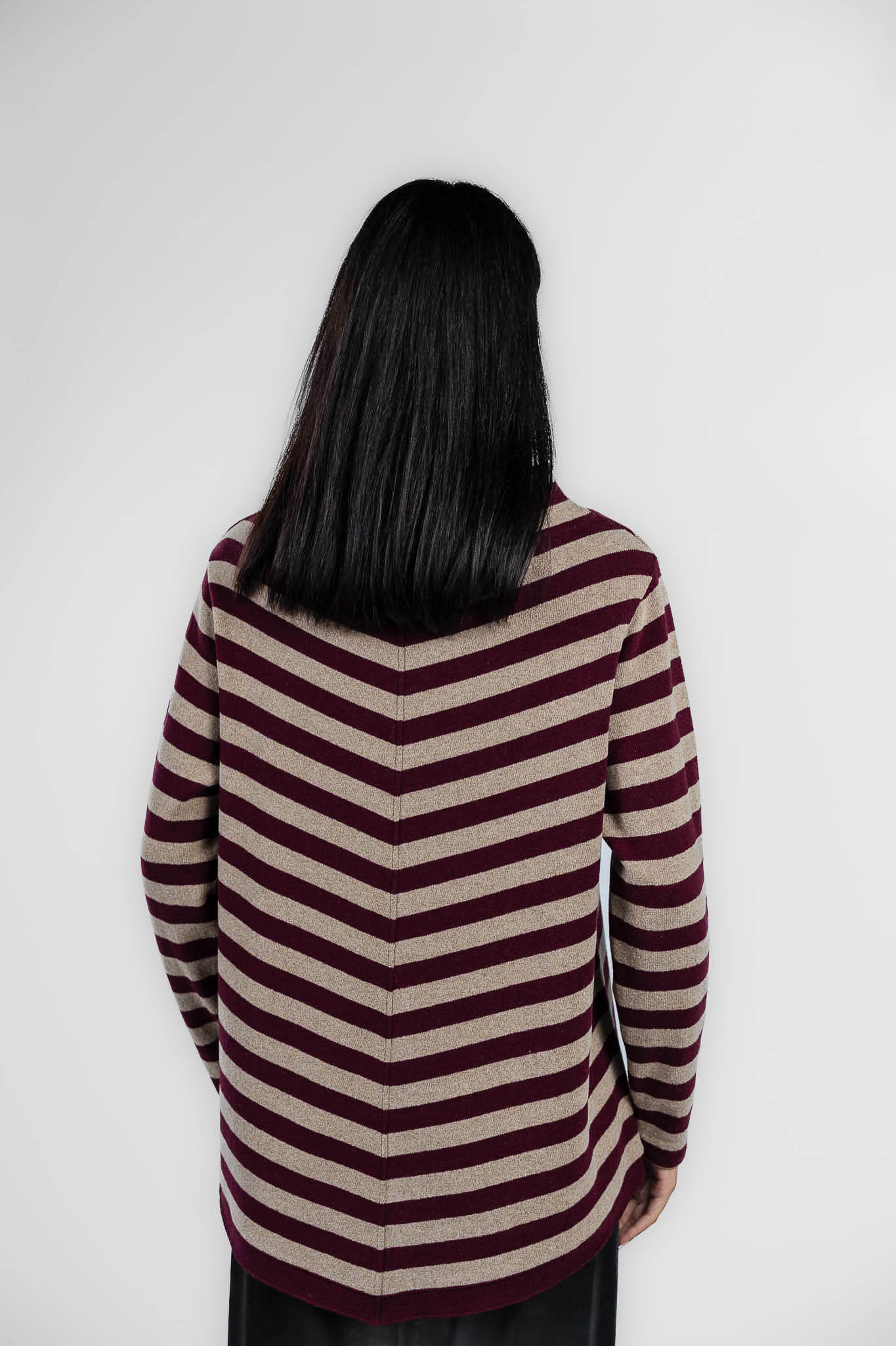 Un mix perfetto di stile e raffinatezza, questa maglia a righe manica lunga è ideale per chi cerca un capo che unisce eleganza e comfort. Le righe bordeaux in lurex e beige creano un contrasto sofisticato, mentre il filo di lurex aggiunge una leggera lucentezza, donando un tocco di luminosità al look. Il design a maniche lunghe la rende perfetta per le stagioni più fresche, mentre la vestibilità comoda garantisce una sensazione di comfort per tutta la giornata. Facile da abbinare con jeans, pantaloni eleganti o gonne, questa maglia è perfetta per un look casual-chic, ma anche per un’uscita serale elegante.