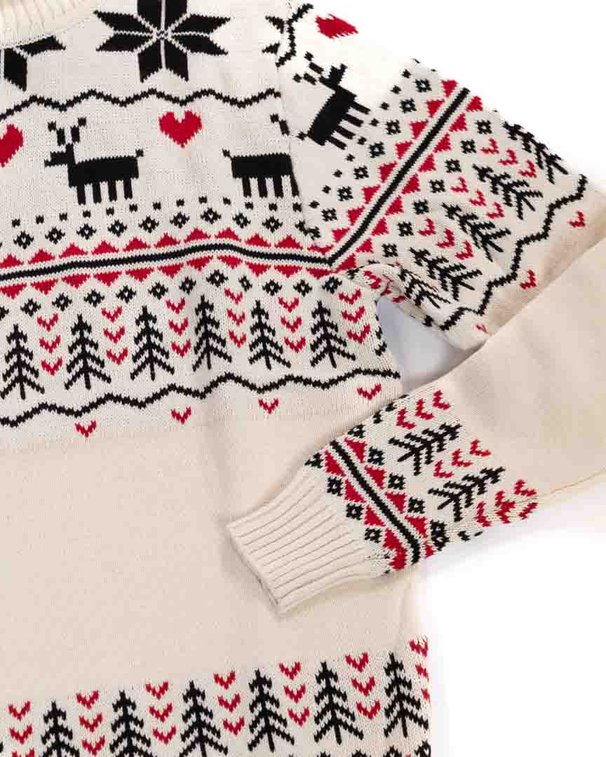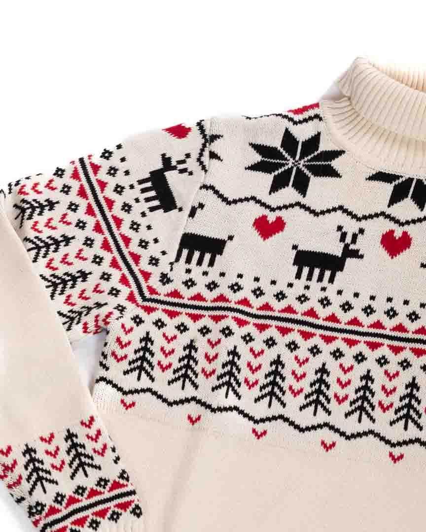 Maglione bianco a collo alto con dettagli natalizi delicati. Morbido, luminoso e ideale per un look invernale pulito.