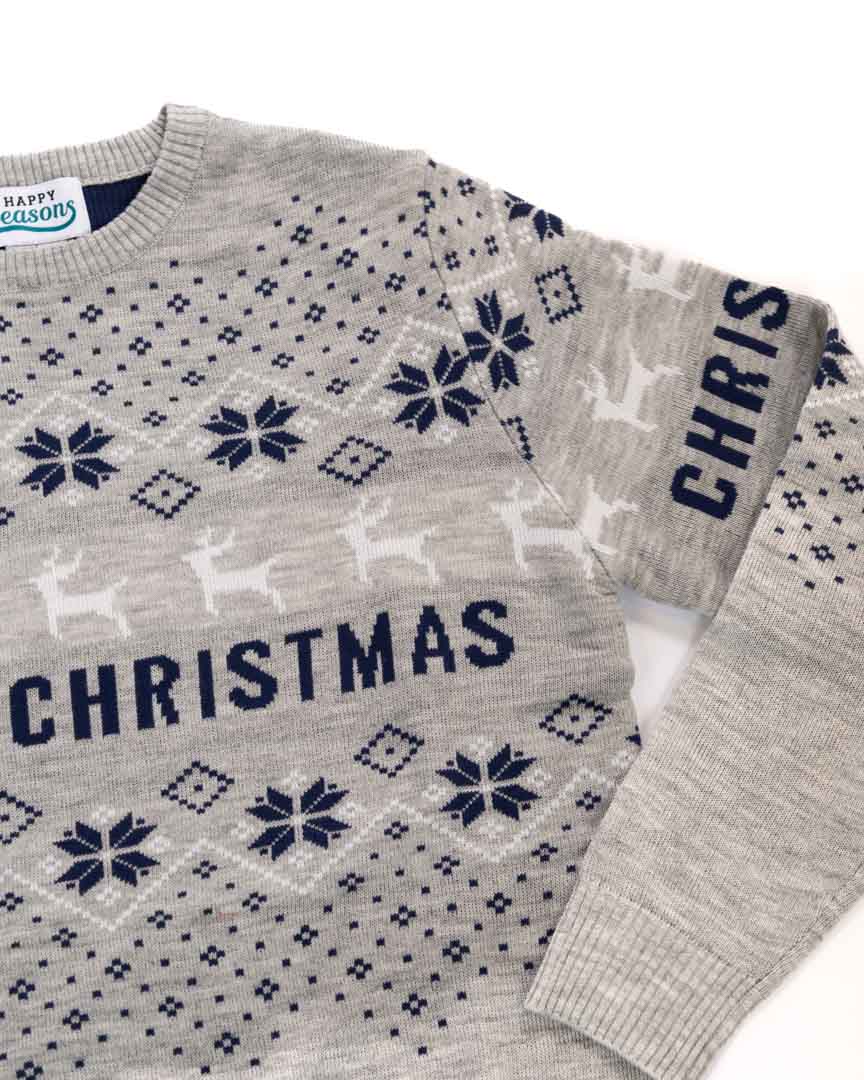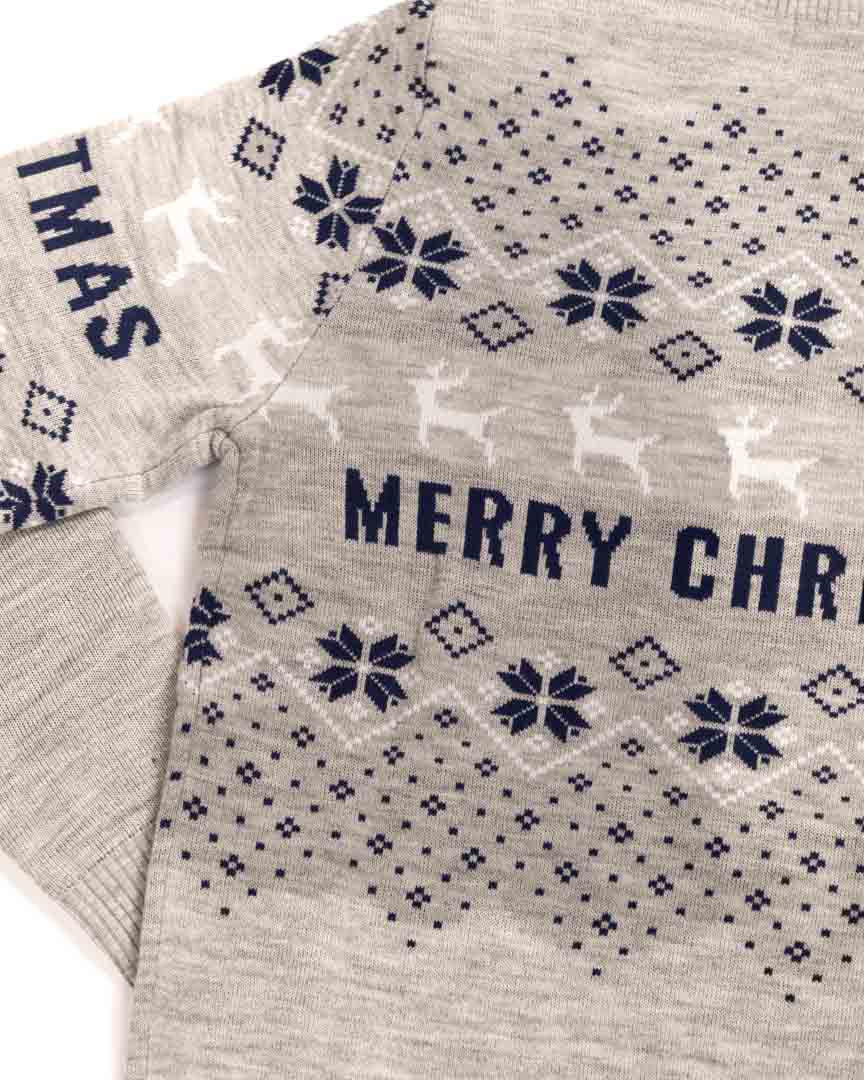 Maglione grigio con dettagli natalizi, semplice e confortevole. Si abbina facilmente a qualsiasi stile.