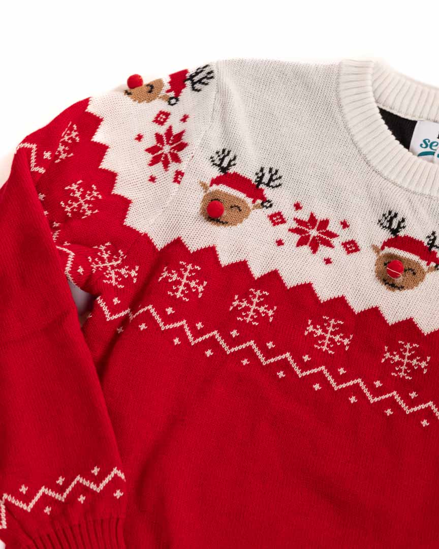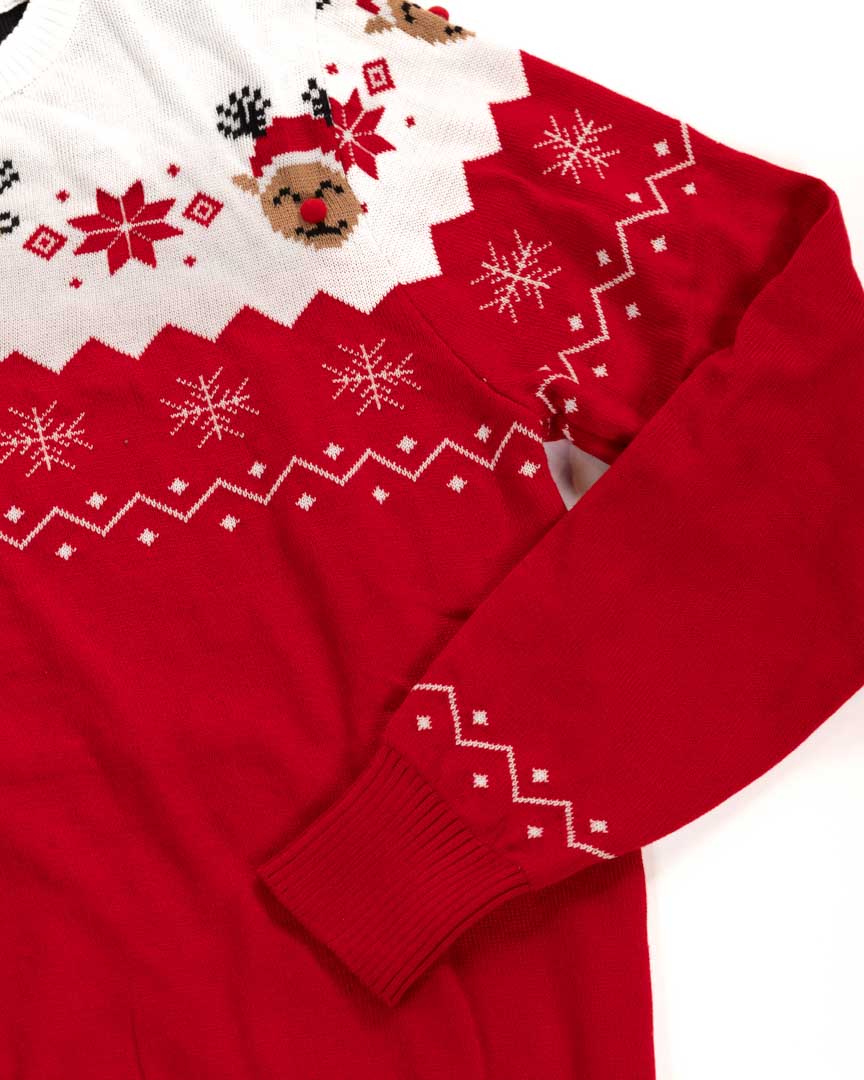 Maglione rosso a tema natalizio, vivace e classico. Un must-have per le giornate di festa.