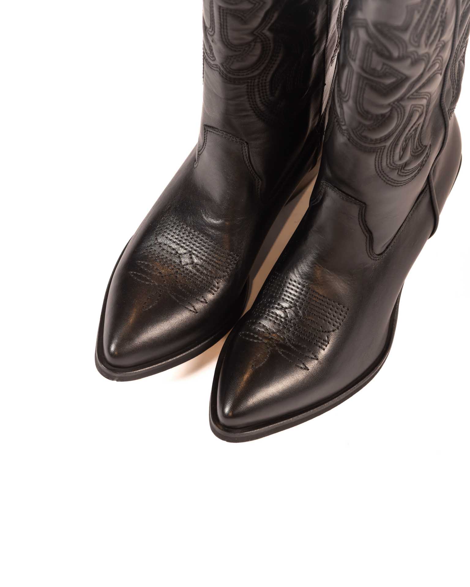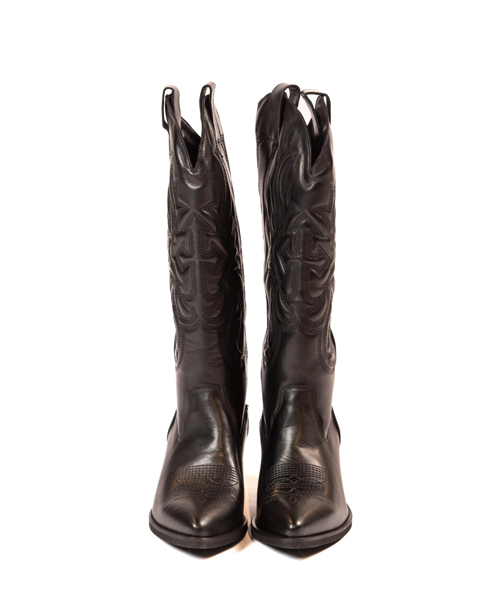 Un’icona senza tempo. Questo stivale texano nero classico è il capo ideale per chi ama lo stile western con un tocco urbano. Realizzato in materiale effetto pelle o scamosciato (a seconda del prodotto reale), presenta una linea pulita, una punta affusolata e il classico tacco inclinato, elementi che definiscono l’anima autentica del texano.