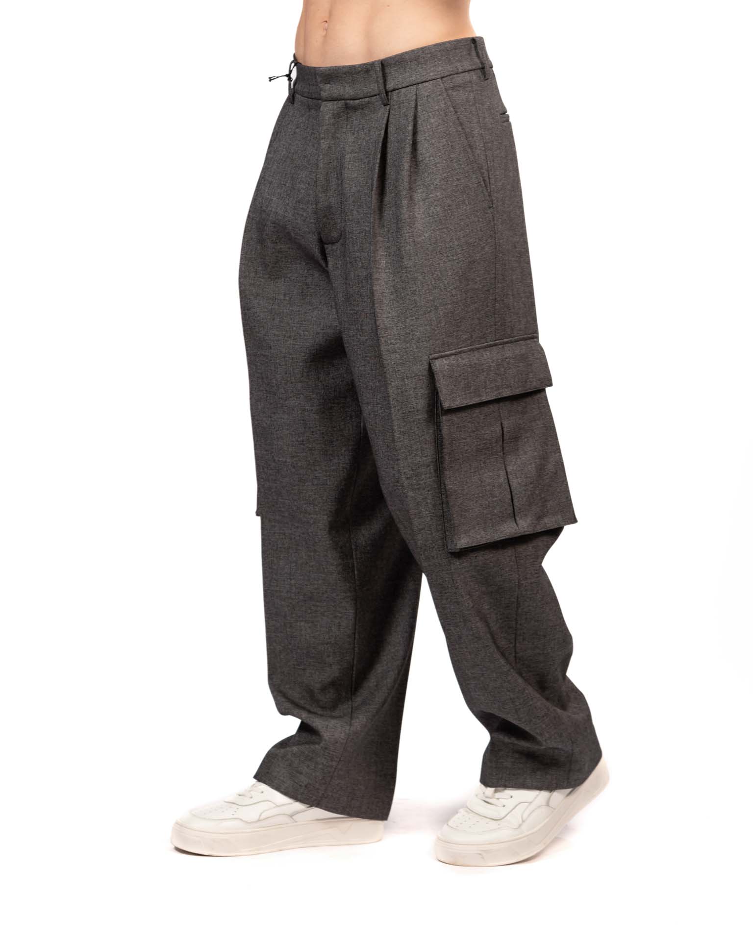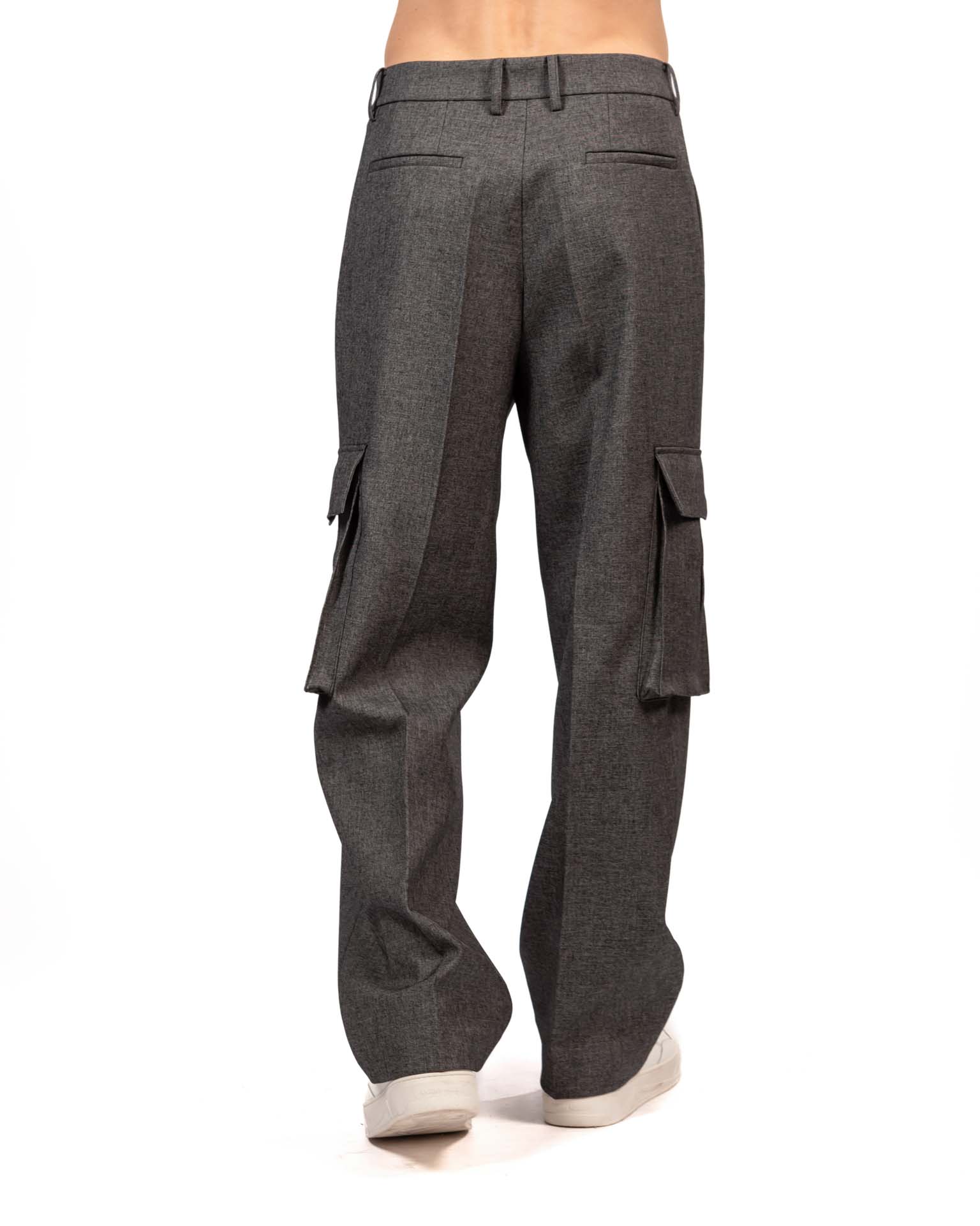 La sartorialità incontra il design urban nei pantaloni cargo in tessuto strutturato. Con tasche multiple e fit rilassato garantiscono praticità e libertà di movimento, mentre il filo rosso della narrazione (IM)PERFECTION caratterizza il capo con cuciture effetto raw sulla cintura interna.