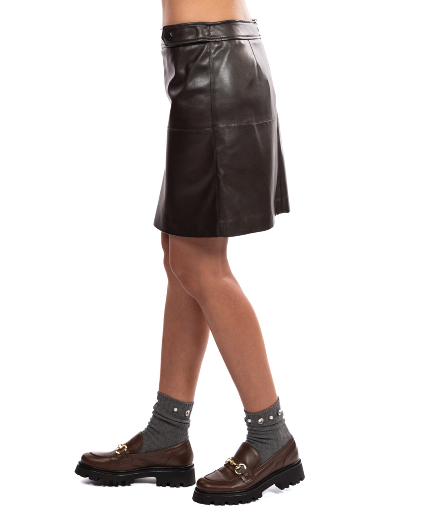 Decisa, moderna e incredibilmente versatile: la gonna in ecopelle marrone Penny Black è il capo ideale per aggiungere carattere a ogni outfit. Realizzata in morbida ecopelle di alta qualità, offre una texture liscia e raffinata che dona un look contemporaneo senza rinunciare al comfort.