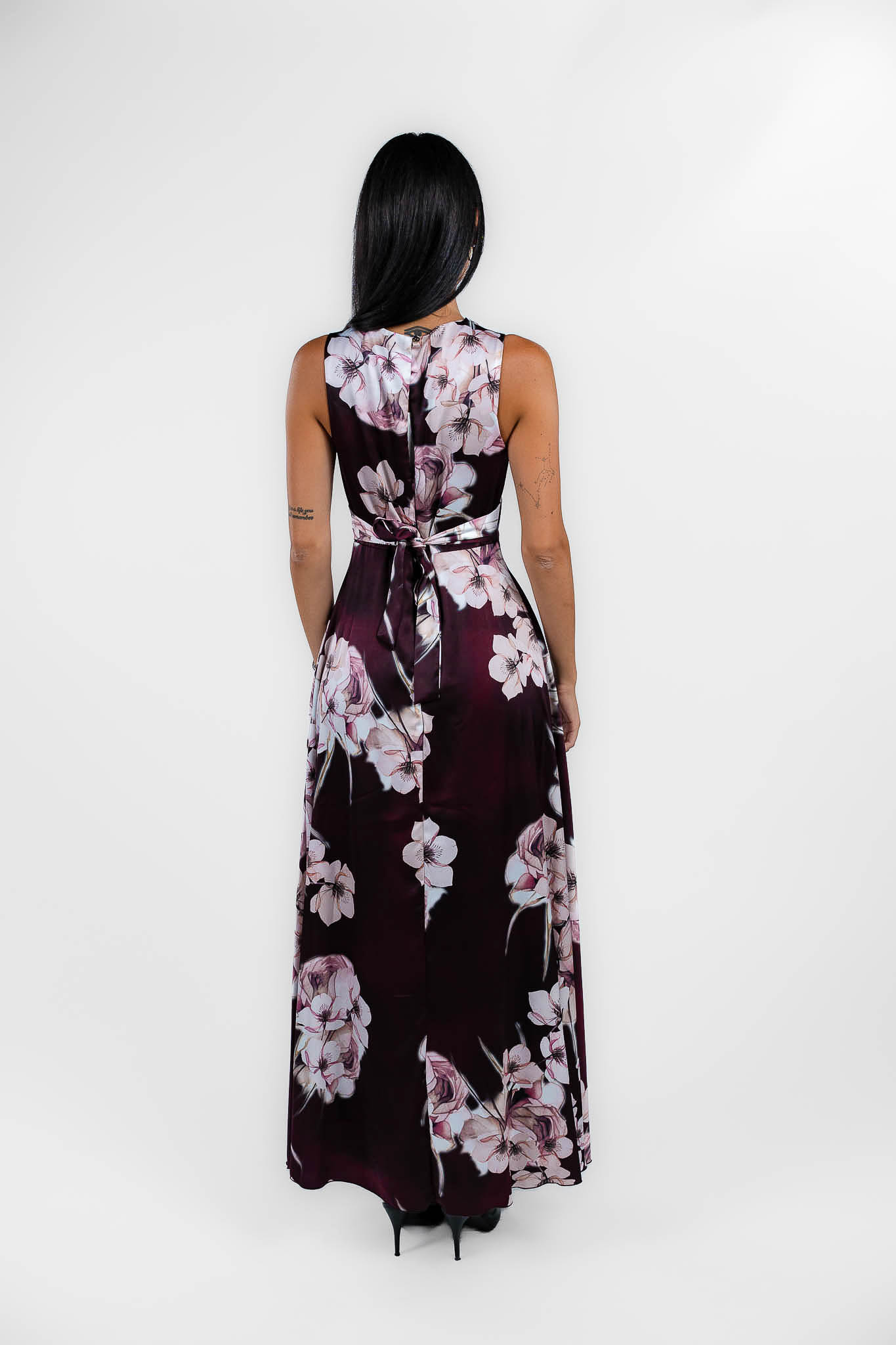Impero fondo bordeaux con fantasia a fiori con fiocco dietro