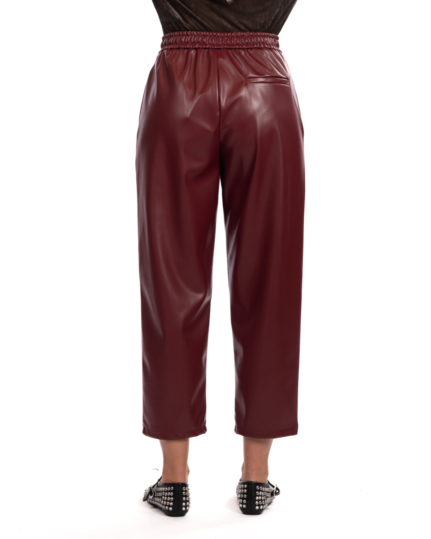 Il pantalone in ecopelle bordeaux firmato Vicolo è il capo perfetto per aggiungere un tocco di personalità ai tuoi look. Realizzato in morbida ecopelle effetto liscio, avvolge la silhouette con una vestibilità moderna e femminile, mantenendo sempre il massimo comfort.