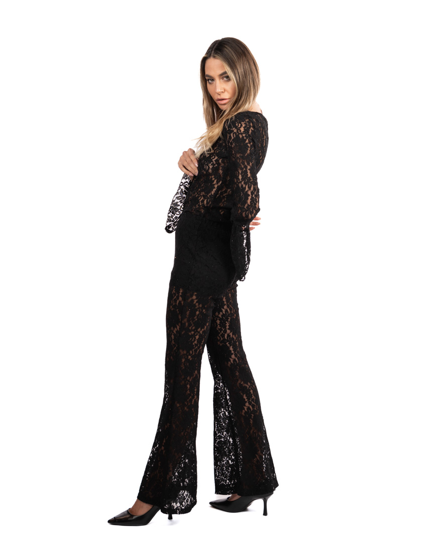Chic, sofisticati e dal fascino contemporaneo: i pantaloni in pizzo nero Vicolo sono il capo perfetto per dare carattere a ogni look elegante. Realizzati in pizzo leggero e dettagliato, uniscono comfort e stile, valorizzando la silhouette con una vestibilità moderna e femminile.